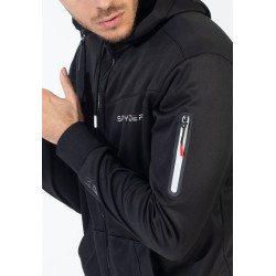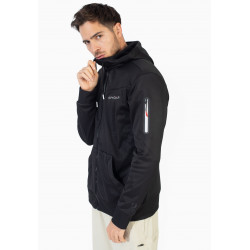 Kapuzenjacke mit Reißverschluss. Kapuze mit Kordelzug. Seitentaschen mit Reißverschlusstasche am linken Ärmel. Logo auf der Vorderseite und dem linken Ärmel.