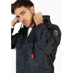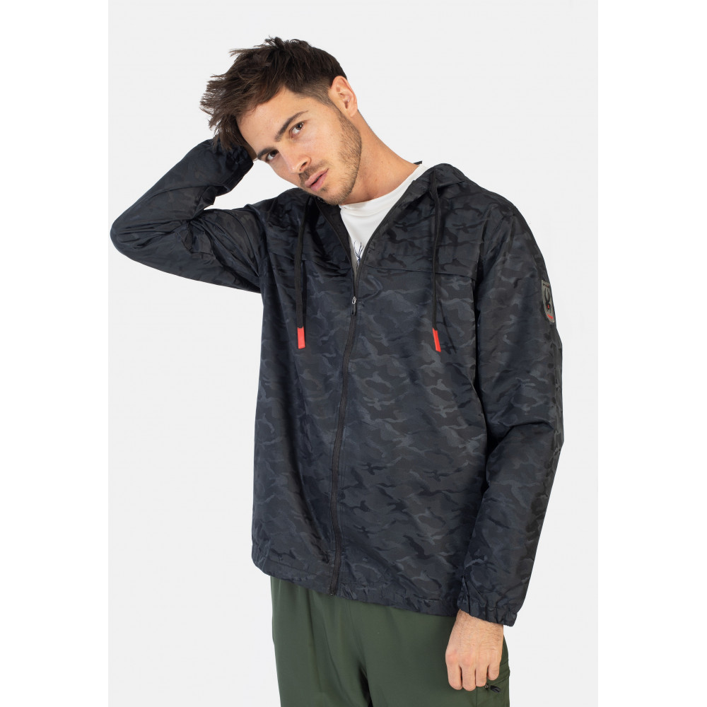 Jacke mit Kapuzenprint „Camouflage“ mit Reißverschluss. Kordelzug für die Kapuze. Taschen an den Seiten. Logo mit zwei Links von Ärmel.