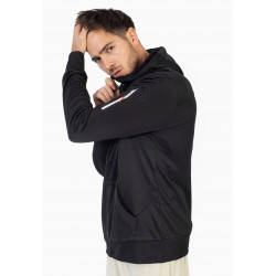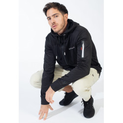 Hooded zip-up jacket. Drawstring hood. Side pockets with a zipped pocket on the left sleeve. Logo on the front and left sleeve.