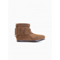 Estos botines irán con todos tus conjuntos. La suela de punta cuadrada con estos largos flecos de ante, su trenza decorativa y sus conchos metálicos dan a estas botas su originalidad.