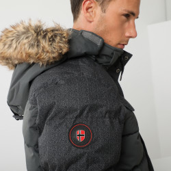 Chaqueta Manga larga Capucha con aplique de pelo sintético Cierre con cremallera y botón a presión delante 2 bolsillos con solapa y botón a presión en el pecho 2 bolsillos delante 1 bolsillo con solapa y velcro en una manga Logo en el pecho Logo en una manga Acolchado